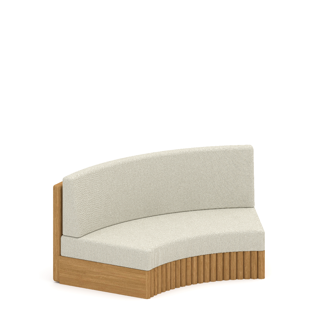 This collection showcases a solid wood base crafted in clean horizontal slats that form a strong architectural foundation beneath the cushions . The slightly recessed seating creates a refined floating...