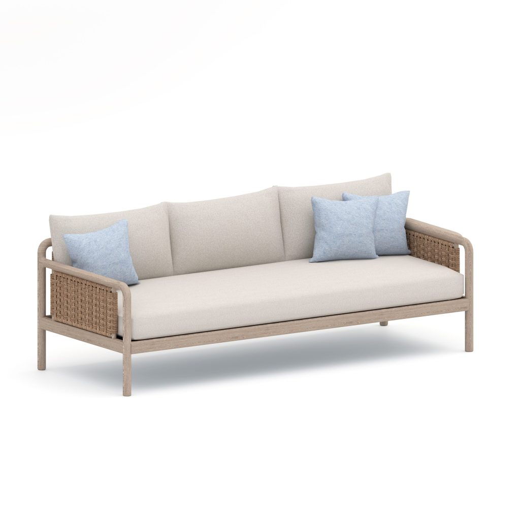 This collection showcases a solid wood base crafted in clean horizontal slats that form a strong architectural foundation beneath the cushions . The slightly recessed seating creates a refined floating...