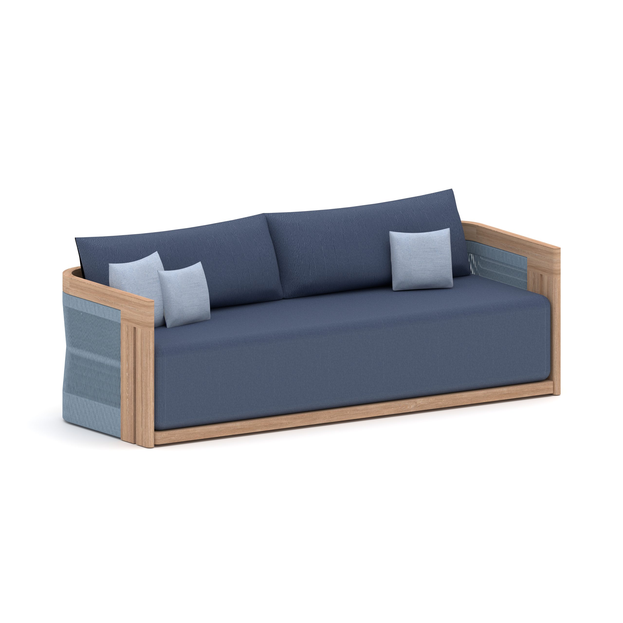 This collection showcases a solid wood base crafted in clean horizontal slats that form a strong architectural foundation beneath the cushions . The slightly recessed seating creates a refined floating...