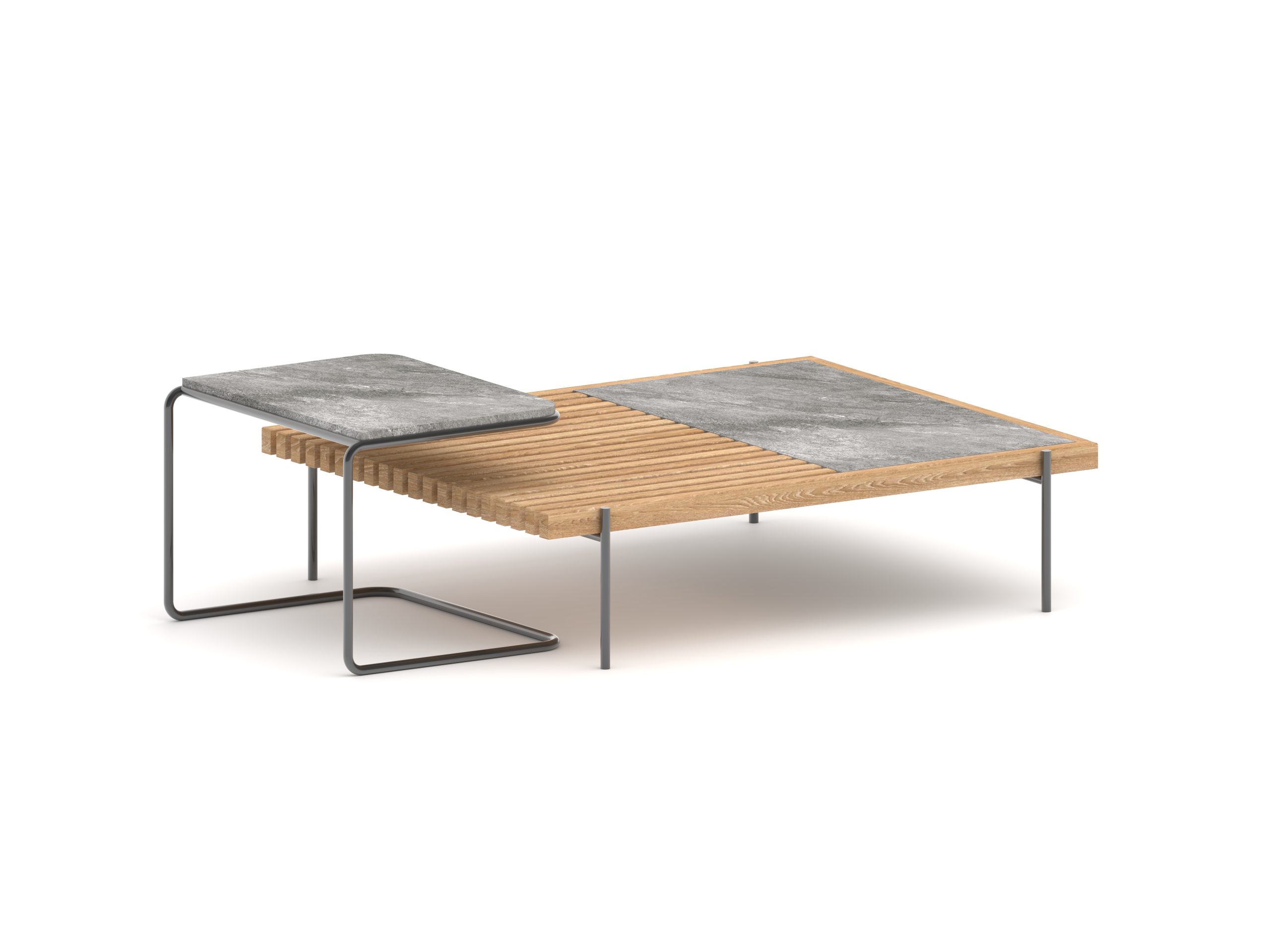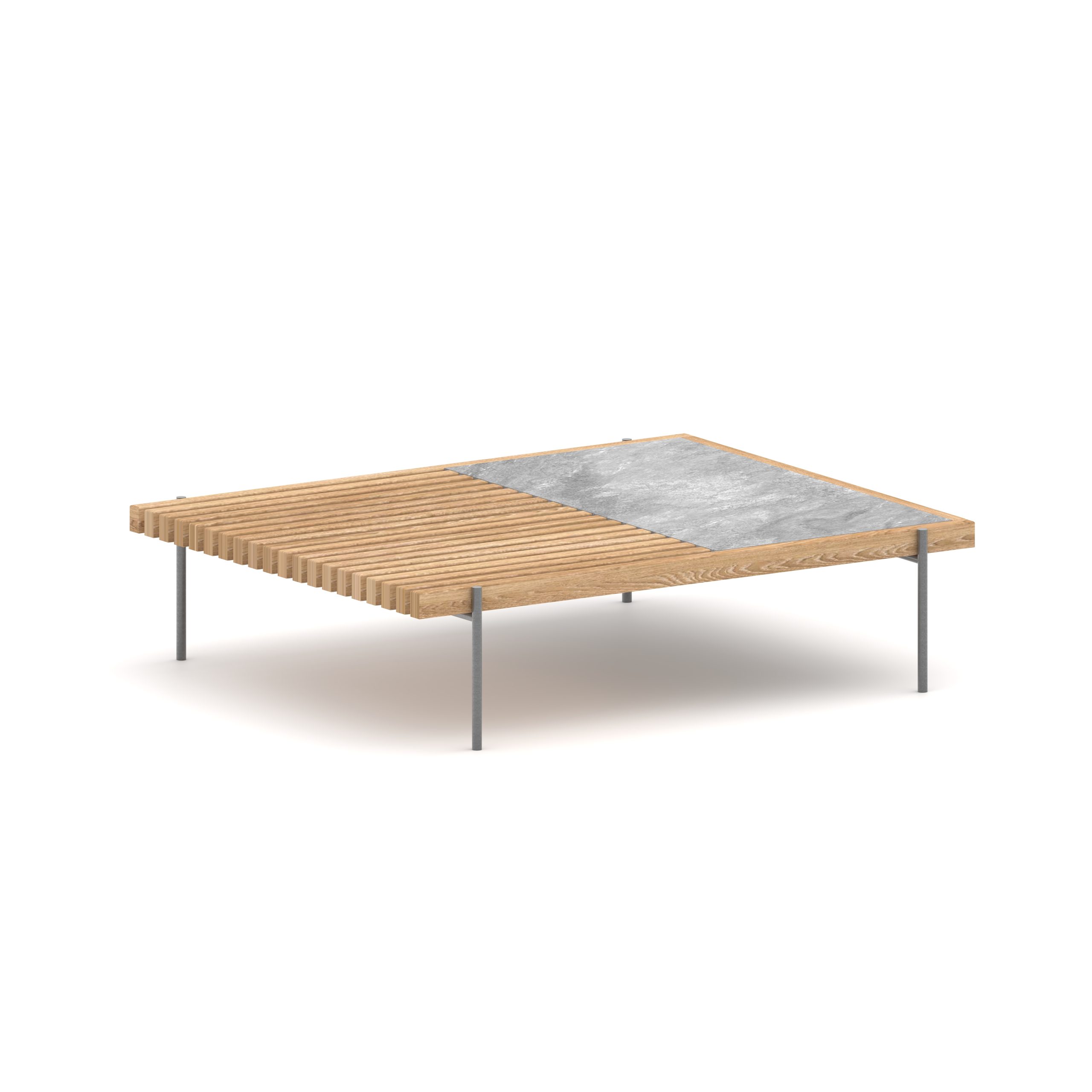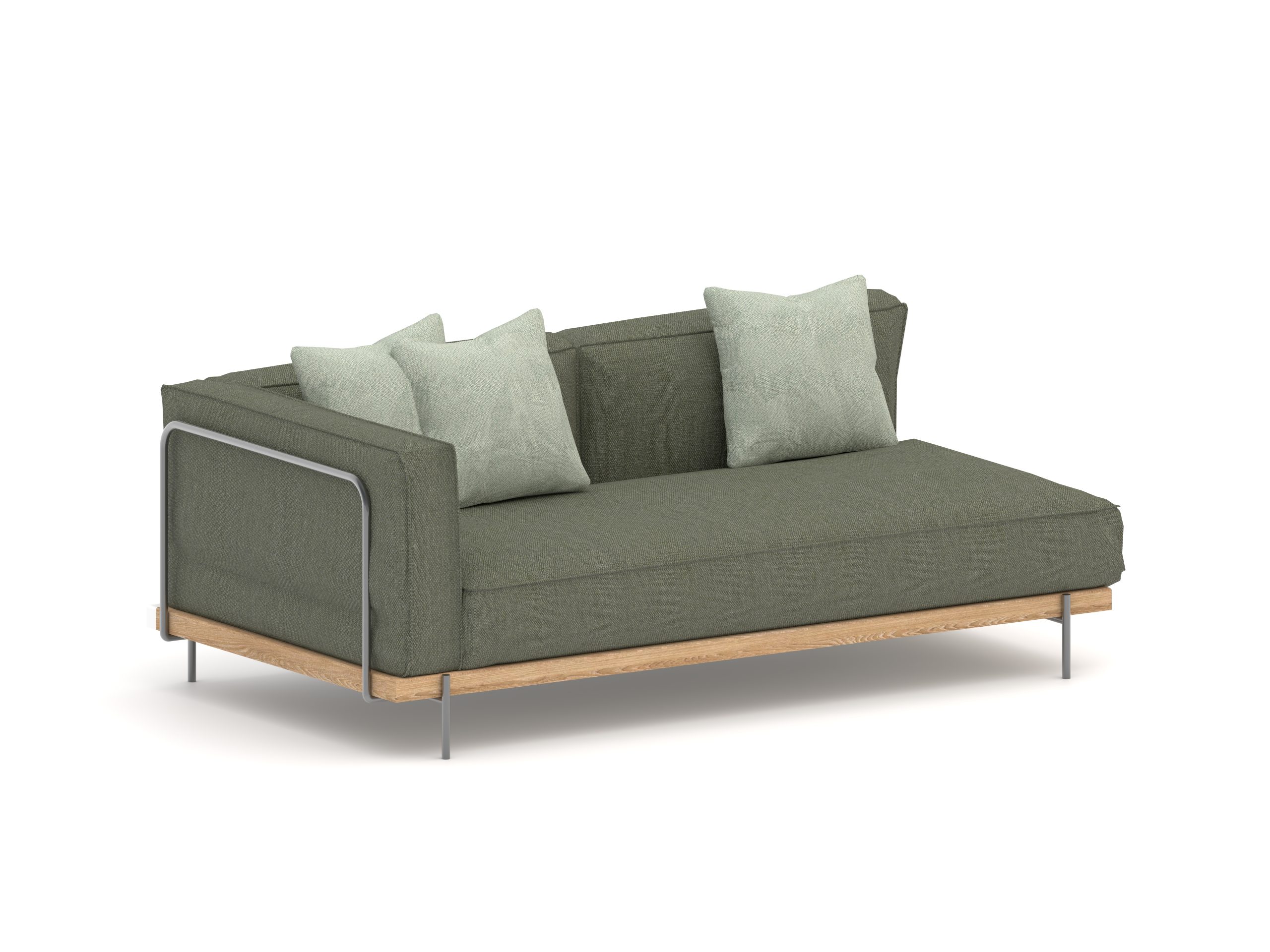 This collection showcases a solid wood base crafted in clean horizontal slats that form a strong architectural foundation beneath the cushions . The slightly recessed seating creates a refined floating...